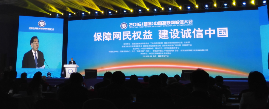 2016年12月9日,以“诚信赢得未来”为主题的2016(首届)中国互联网诚信大会在北京国家会议中心召开。本次大会由工信部、国家互联网信息办公室、国家发改委、共青团中央、公安部、工商总局、国家卫计委、国家新闻出版广电总局等多个部委作为指导单位,中国互联网协会与新华社新媒体中心主办。