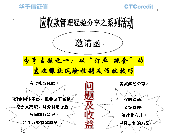 日前华予信征信在位于上海市徐汇区肇嘉浜路1065号的飞雕国际大厦举办:从“订单-现金”的应收账款风险控制及催收技巧分享会。